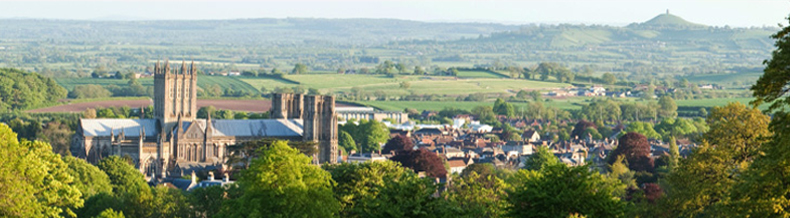 Wells, Somerset, showing Wells Cathedral and Glastonbury Tor Contact Us